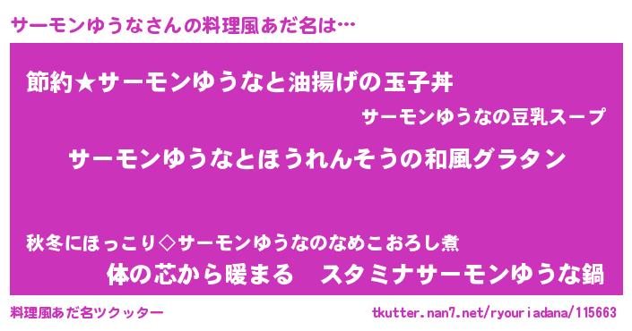 | ヒーロー風カッコイイあだ名 | 『スーパーサーモンユウナ』 |