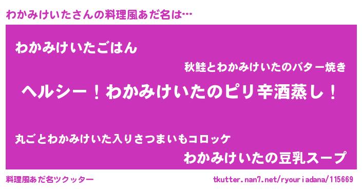 | 意味不明あだ名 | 『自称わかみけいた』 |