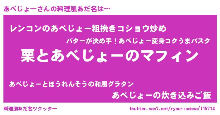 | 意味不明あだ名 | 『自称あべじょー』『永久保存あべじょー』 |
