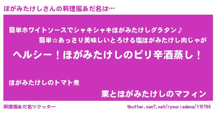 | ヘコむあだ名 | 『ほがっぺ』『ほがみたけし(笑)』 |
