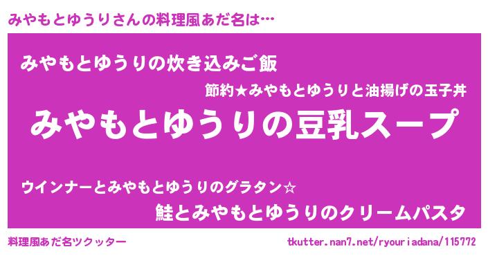 | ヘコむあだ名 | 『みやっぺ』『みやもー』『豆乳』 |