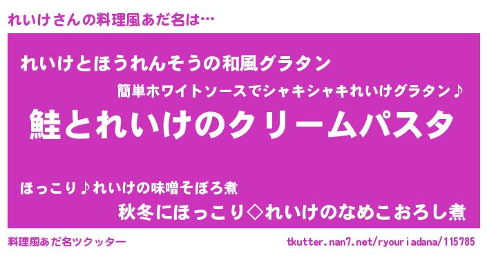 | 女子向けラノベタイトル風あだ名 | 『死神れいけの再婚』『れいけ様がみてる』 |
