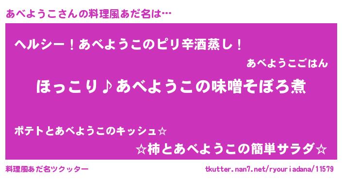 | 意味不明あだ名 | 『ペロリンあべようこ』『自称あべようこ』 |