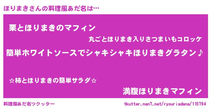 | 男性向けラノベタイトル風あだ名 | 『ほりまきの嫁は女の子じゃないと思った?』 |