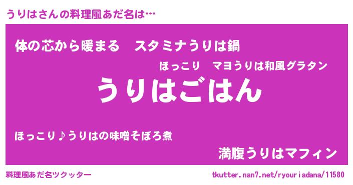 | 男性向けラノベタイトル風あだ名 | 『ウリハスレイヤー』『うりはの憂鬱』 |