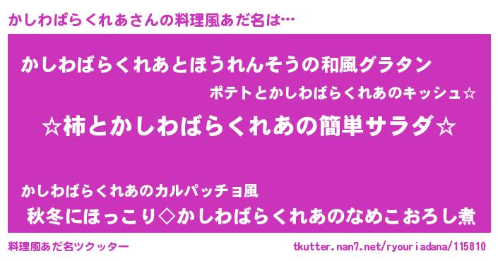 | 意味不明あだ名 | 『たけのこ科かしわばらくれあ属』 |