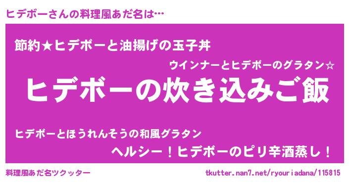 | 男性向けラノベタイトル風あだ名 | 『うちのヒデボーが世界を掌握している!』 |