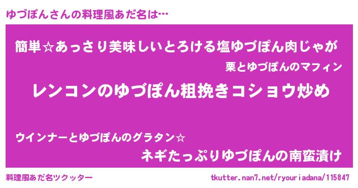 | 女子向けラノベタイトル風あだ名 | 『ゆづぽんなんてお断りですっ。』 |