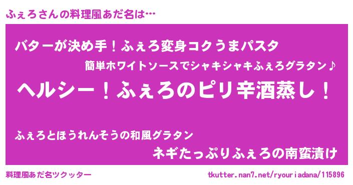 | ヒーロー風カッコイイあだ名 | 『最強戦士フェロ』『慈愛の使者ふぇろ』 |