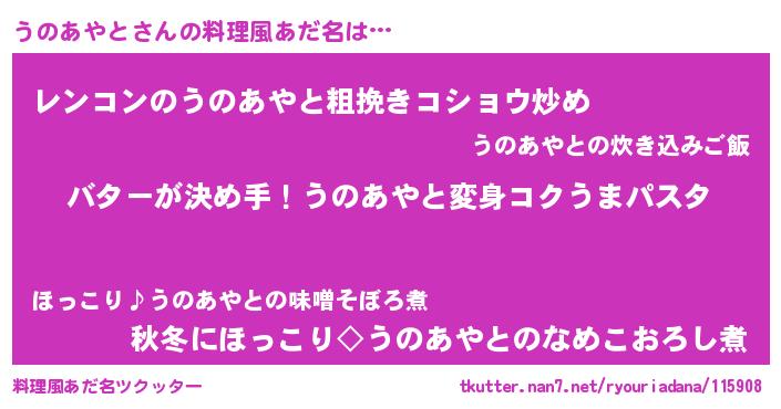 ポケモン風あだ名 | 『ウックウザ』『ウノセウス』 |
