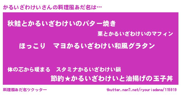 | ヘコむあだ名 | 『かるいざわけい(笑)』『かるふぇ~』 |