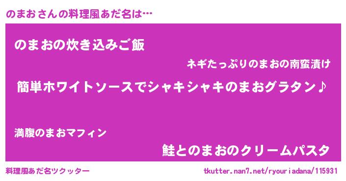| 女子向けラノベタイトル風あだ名 | 『のまお様がみてる』『死神のまおの再婚』 |