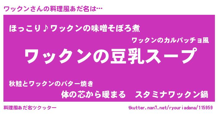 | 男性向けラノベタイトル風あだ名 | 『ダンジョンにワックンを求めるのは間違っているだろうか』 |