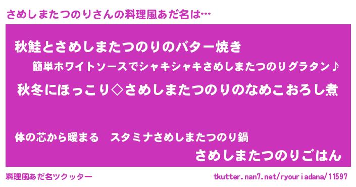 | 男性向けラノベタイトル風あだ名 | 『さめしまたつのりに滅ぼされるだけの簡単なお仕事です』 |