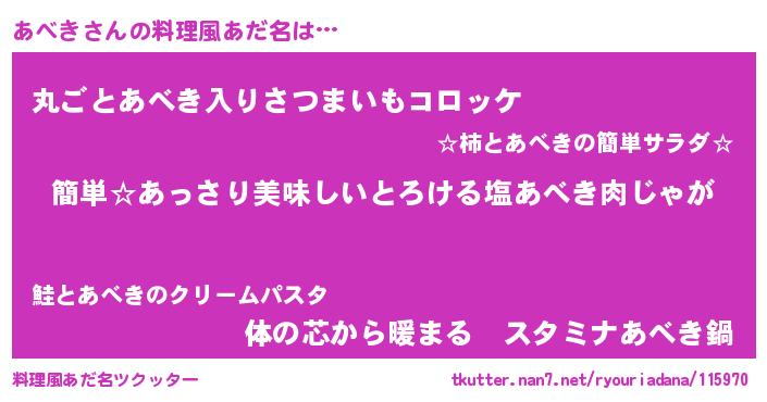 | ヘコむあだ名 | 『あべき(震え声)』『豆乳』 |
