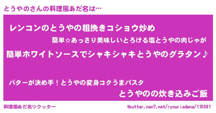 | ヘコむあだ名 | 『とう太郎』『とうやの(笑)』 |