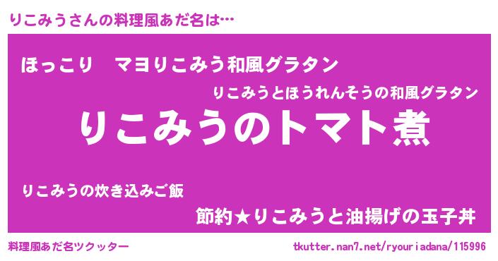 | ヘコむあだ名 | 『りこもー』『酢こんぶ』 |