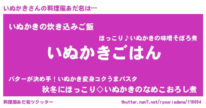 | ヘコむあだ名 | 『いぬにゅー』『なまこ酢』『いぬお』 |