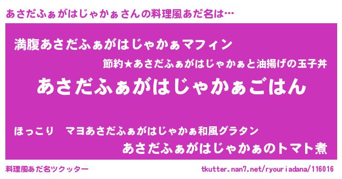 | ヘコむあだ名 | 『あさだふぁがはじゃかぁ(震え声)』 |