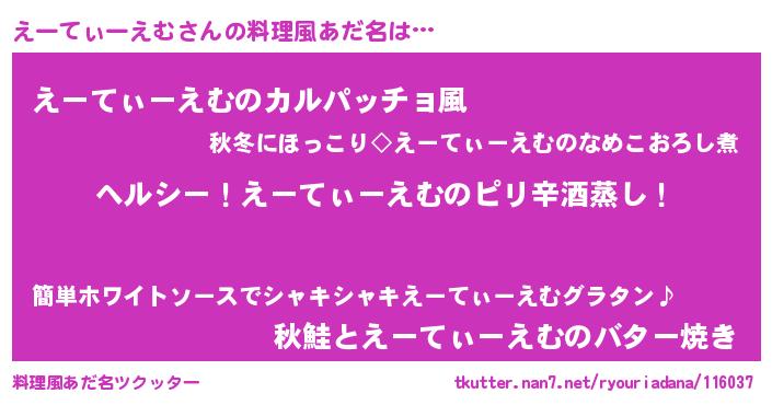 | 男性向けラノベタイトル風あだ名 | 『Re:えーてぃーえむから始める異世界生活』 |