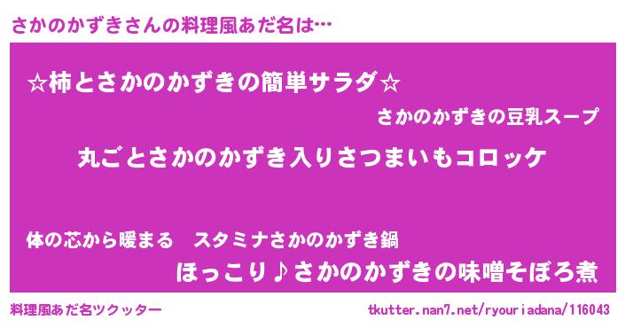 | 意味不明あだ名 | 『住所不定無職さかのかずき(53歳)』 |