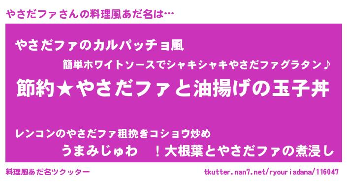 | 意味不明あだ名 | 『ペロリンやさだファ』『自称やさだファ』 |