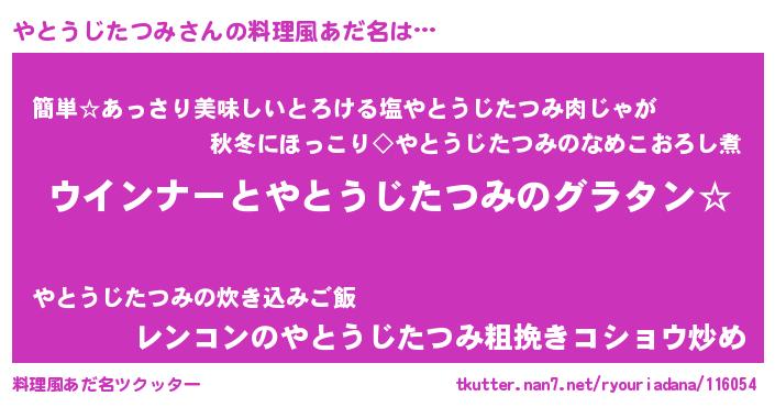 | 意味不明あだ名 | 『やとうじたつみフォーエバー』 |