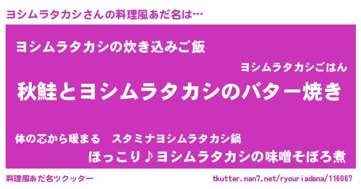| 意味不明あだ名 | 『永久保存ヨシムラタカシ』 |