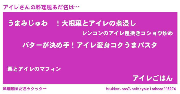 | ヘコむあだ名 | 『なまこ酢』『アイレ(笑)』『アイを』 |