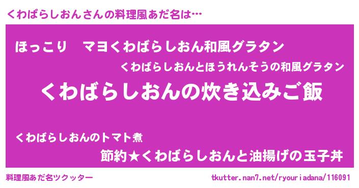| 恥ずかしいあだ名 | 『プリティーくわばらしおん』『くわちん』 |