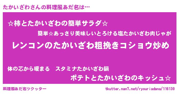 | 意味不明あだ名 | 『自称たかいざわ』『永久保存たかいざわ』 |