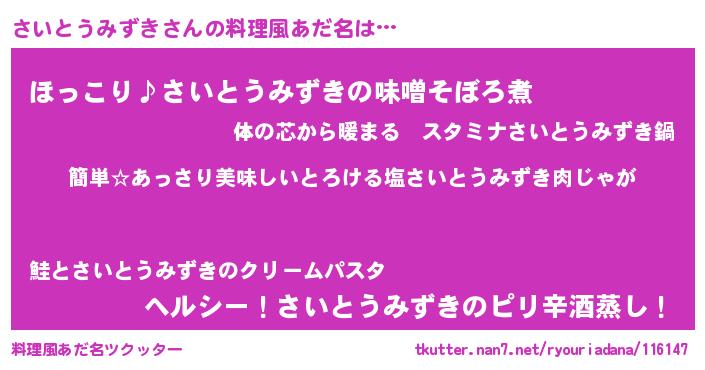 | 意味不明あだ名 | 『永久保存さいとうみずき』 |