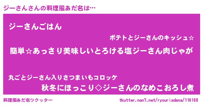 | 意味不明あだ名 | 『永久保存ジーさん』『ペロリンジーさん』 |