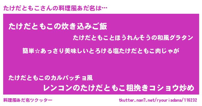 | 意味不明あだ名 | 『永久保存たけだともこ』 |