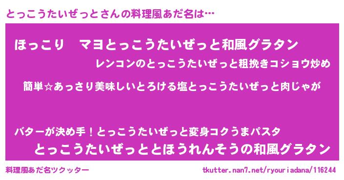 | 意味不明あだ名 | 『永久保存とっこうたいぜっと』 |