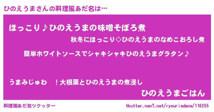 | ポケモン風あだ名 | 『ヒヒノエウマ』『ヒノチュウ』 |