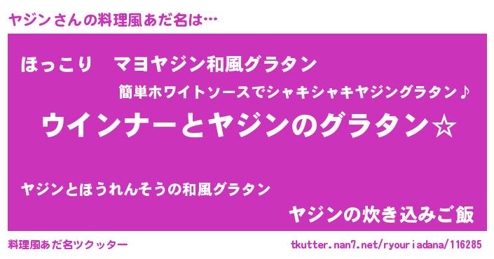 | 意味不明あだ名 | 『ヤジンフォーエバー』『自称ヤジン』 |