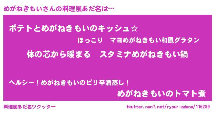 | ヘコむあだ名 | 『つくし』『めがを』『めがもー』 |