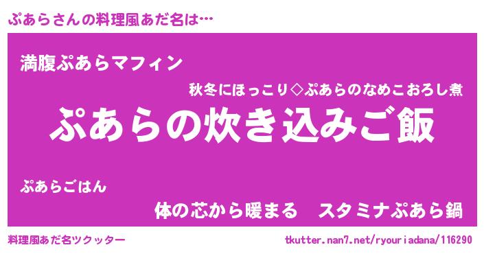 | ヒーロー風カッコイイあだ名 | 『ネオプアラ』『ウルトラぷあらマン』 |