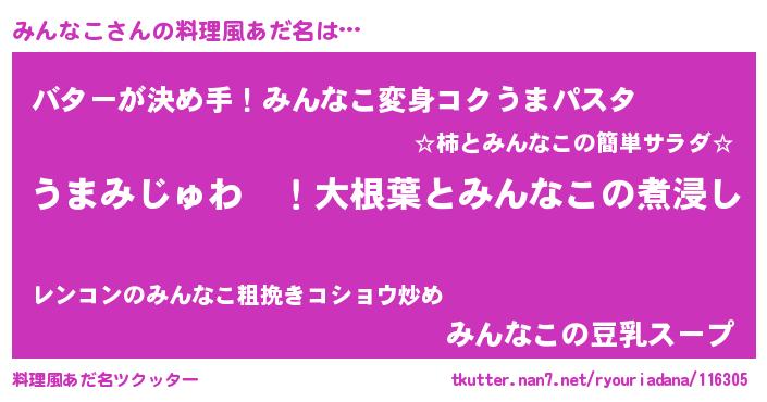 | 胡散臭い通販商品みたいなあだ名 | 『運命の人と巡り会える高級そうな皿…その名も「みんなこ」』 |