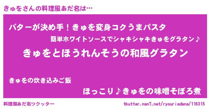 | ピコ太郎風あだ名 | 『キキ太郎』『キコ五郎』『キュ四郎』 |