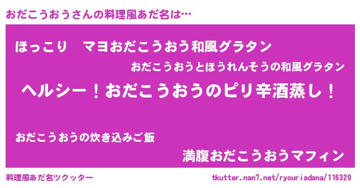 | 男性向けラノベタイトル風あだ名 | 『Re:おだこうおうから始める異世界生活』 |