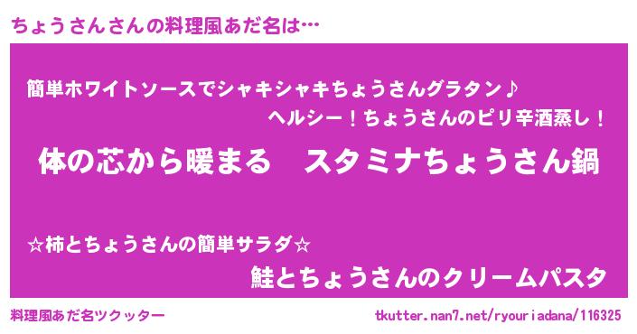 | 意味不明あだ名 | 『ちょうさんフォーエバー』 |