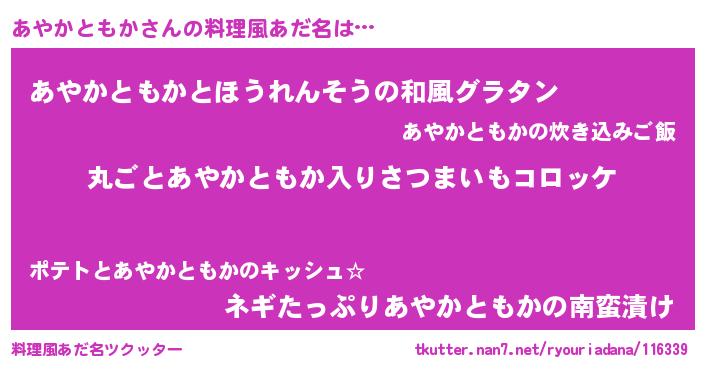 | 恥ずかしいあだ名 | 『プリティーあやかともか』『あやっちょ』 |