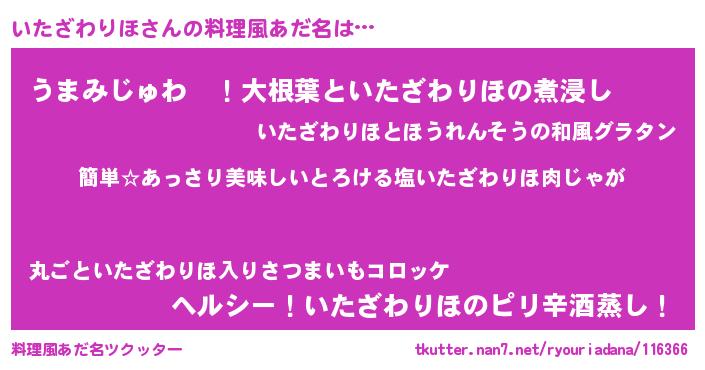 | 胡散臭い通販商品みたいなあだ名 | 『前代未聞の健康食品…その名も「いたざわりほ」』 |