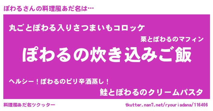 | ヘコむあだ名 | 『なまこ酢』『ぽわる(爆)』『ぽわを』 |
