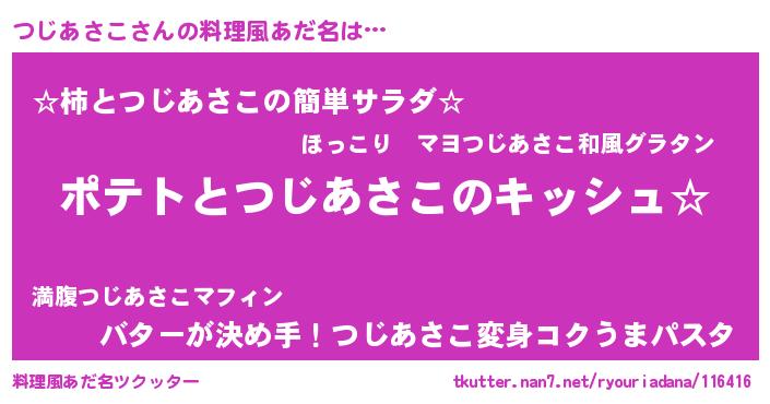 | 女子向けラノベタイトル風あだ名 | 『つじあさこの卵を拾いまして』 |