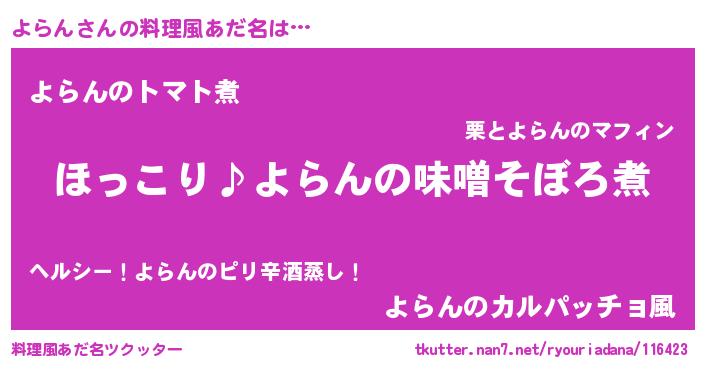 | 意味不明あだ名 | 『ペロリンよらん』『自称よらん』 |