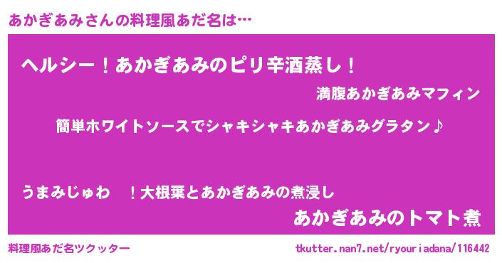 | 女子向けラノベタイトル風あだ名 | 『あかぎあみ様がみてる』 |