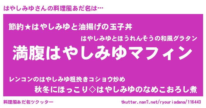 | 意味不明あだ名 | 『永久保存はやしみゆ』『自称はやしみゆ』 |